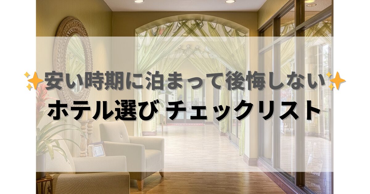 安い時期に泊まって後悔しない!ホテル選びのチェックリスト3つ