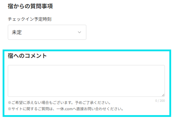 一休comの「宿へのコメント」にリクエストを記入できます